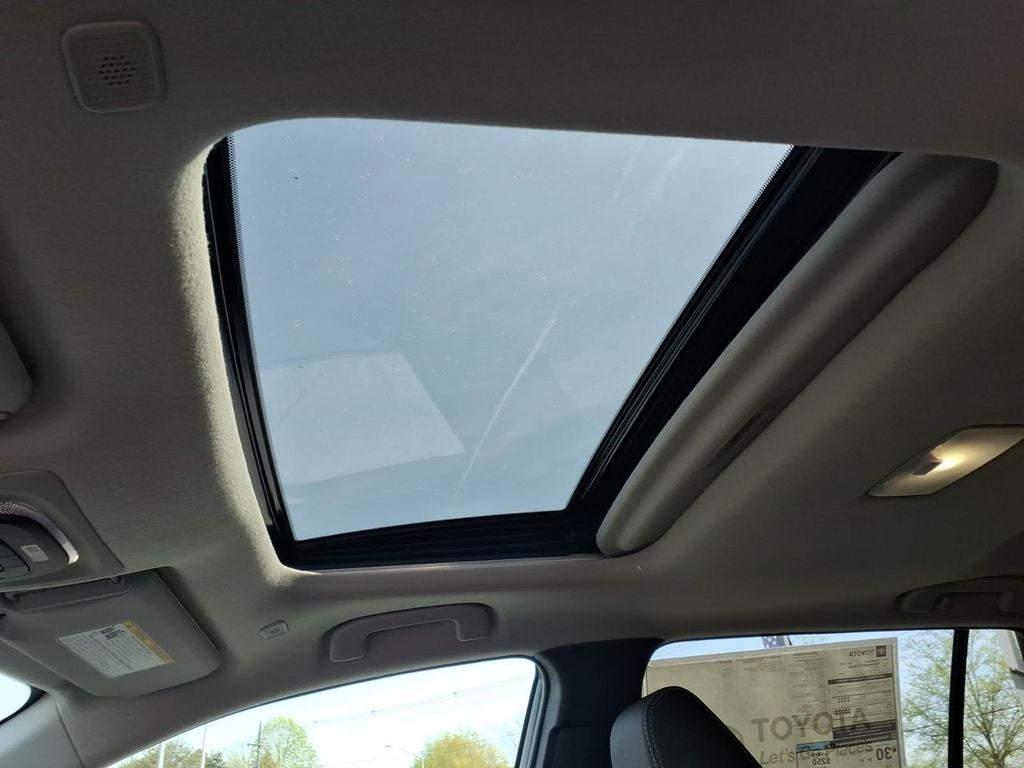 Convenience Package (Power Liftgate and Tilt and Slide Moonroof), 4-Wheel Disc Brakes, 6 Speakers, ABS brakes, Air Conditioning, All Weather Floor/Cargo Liners, Alloy wheels, AM/FM radio: SiriusXM, Auto High-beam Headlights, Auto-dimming Rear-View mirror, Automatic temperature control, Brake assist, Bumpers: body-color, Delay-off headlights, Driver door bin, Driver vanity mirror, Dual front impact airbags, Dual front side impact airbags, Electronic Stability Control, Emergency communication system: Safety Connect (10-year trial), Exterior Parking Camera Rear, Four wheel independent suspension, Front anti-roll bar, Front Bucket Seats, Front Center Armrest, Front dual zone A/C, Front fog lights, Front reading lights, Fully automatic headlights, Garage door transmitter: HomeLink, Heated door mirrors, Heated Front Seats, Heated front seats, Heated steering wheel, Illuminated entry, Knee airbag, Leather Shift Knob, Leather steering wheel, Low tire pressure warning, Mudguards, Occupant sensing airbag, Outside temperature display, Overhead airbag, Panic alarm, Passenger door bin, Passenger vanity mirror, Power door mirrors, Power driver seat, Power steering, Power windows, Radio data system, Radio: 10.5 Toyota Audio Multimedia with 6 Speakers, Rear anti-roll bar, Rear seat center armrest, Rear side impact airbag, Rear window defroster, Rear window wiper, Remote keyless entry, SofTex Seat Trim, Speed control, Split folding rear seat, Spoiler, Steering wheel mounted audio controls, Tachometer, Telescoping steering wheel, Tilt steering wheel, Traction control, Trip computer, Turn signal indicator mirrors, Variably intermittent wipers, and Wheels: 18 Machined/Dark Gray Metallic Finished Alloy.