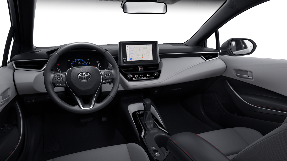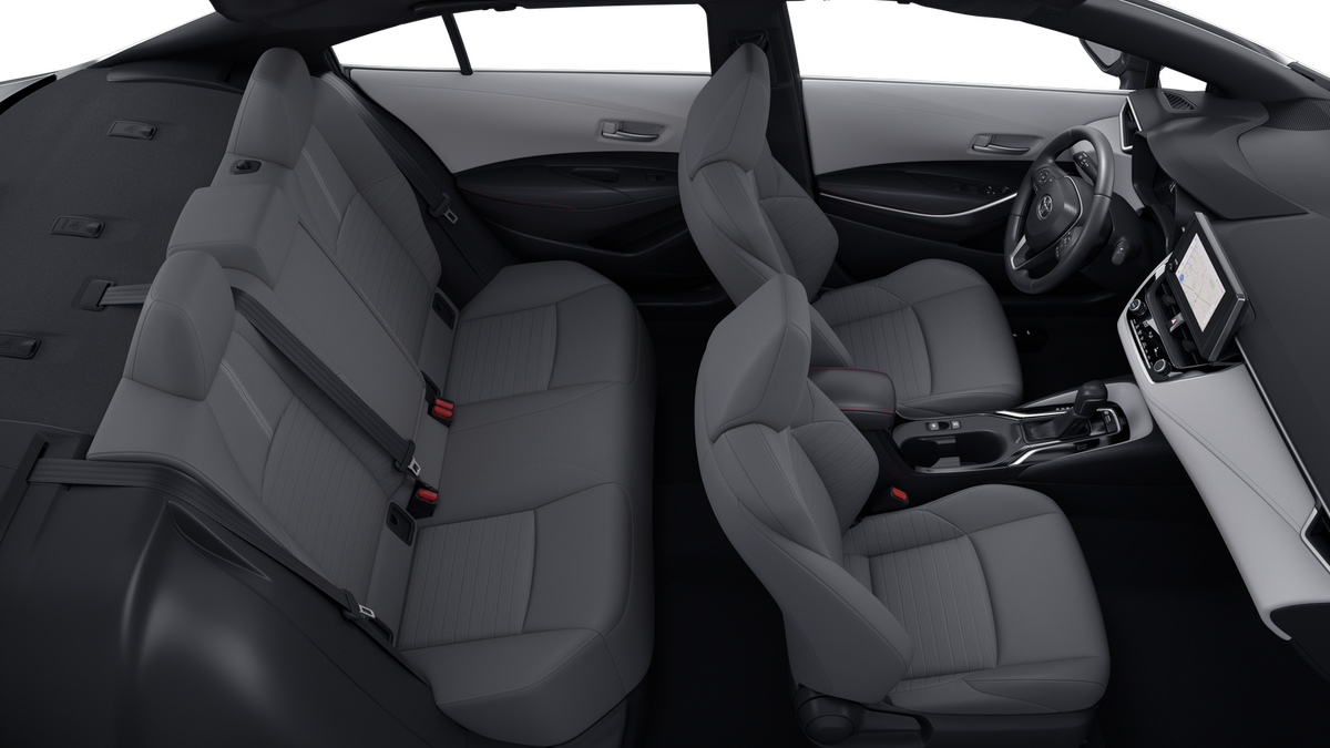 All Weather Floor Liner Package, 4-Wheel Disc Brakes, 6 Speakers, ABS brakes, Air Conditioning, Alloy wheels, AM/FM radio: SiriusXM, Apple CarPlay/Android Auto, Auto High-beam Headlights, Automatic temperature control, Black Badge Overlays, Brake assist, Bumpers: body-color, Delay-off headlights, Driver door bin, Driver vanity mirror, Dual front impact airbags, Dual front side impact airbags, Electronic Stability Control, Emergency communication system: Safety Connect (up to 10-year trial subscription), Exterior Parking Camera Rear, Fabric Seat Trim, Four wheel independent suspension, Front anti-roll bar, Front Bucket Seats, Front Center Armrest, Front reading lights, Front Sport Seats, Fully automatic headlights, Heated door mirrors, Illuminated entry, Knee airbag, Leather steering wheel, Low tire pressure warning, Mudguards, Occupant sensing airbag, Outside temperature display, Overhead airbag, Panic alarm, Passenger door bin, Passenger vanity mirror, Power door mirrors, Power steering, Power windows, Radio data system, Radio: 8 Toyota Audio Multimedia, Rear anti-roll bar, Rear seat center armrest, Rear side impact airbag, Rear window defroster, Remote keyless entry, Speed control, Split folding rear seat, Spoiler, Steering wheel mounted audio controls, Tachometer, Telescoping steering wheel, Tilt steering wheel, Traction control, Trip computer, Turn signal indicator mirrors, Variably intermittent wipers, and Wheels: 18 Alloy with Graphite-Colored Finish.