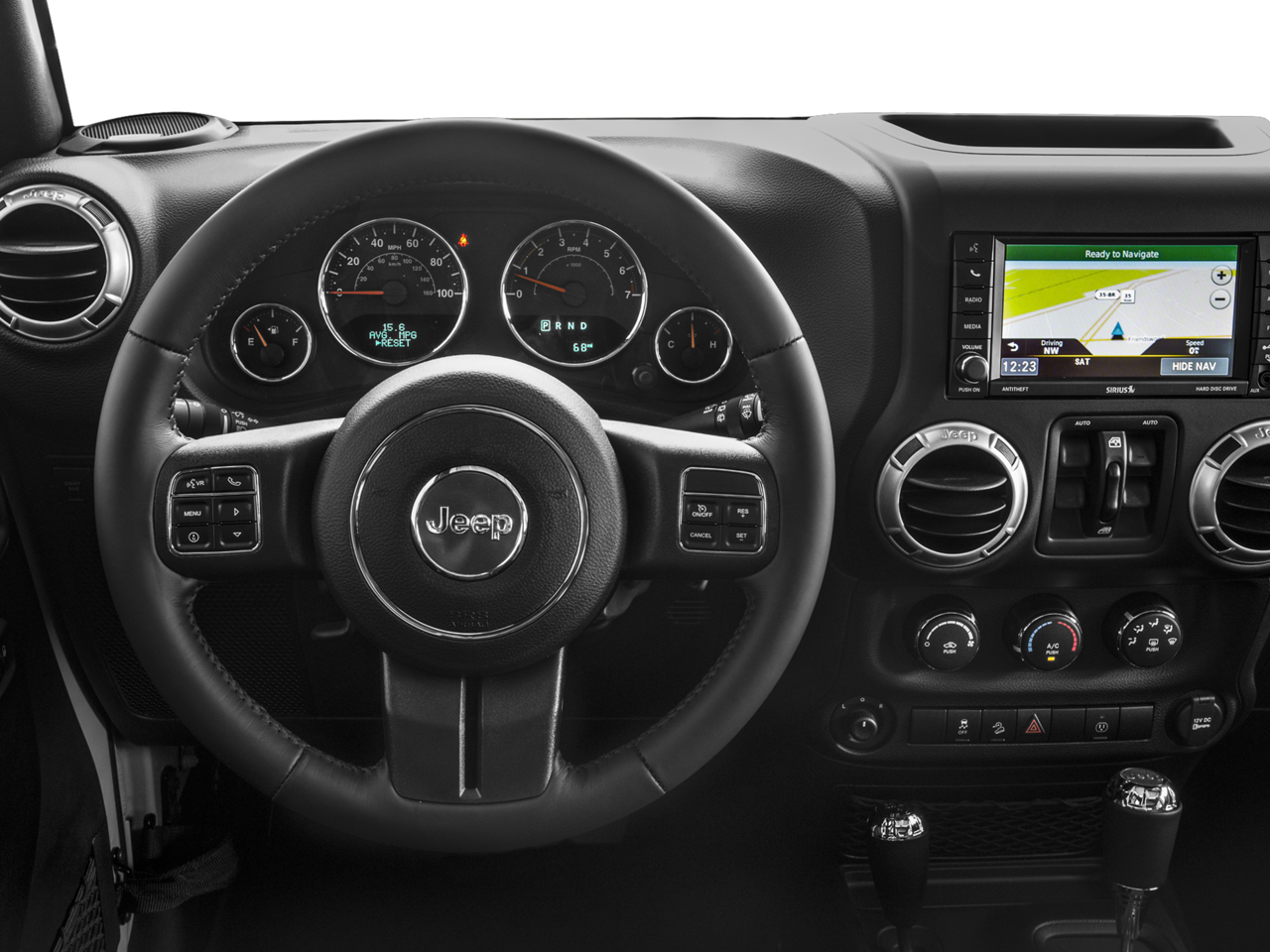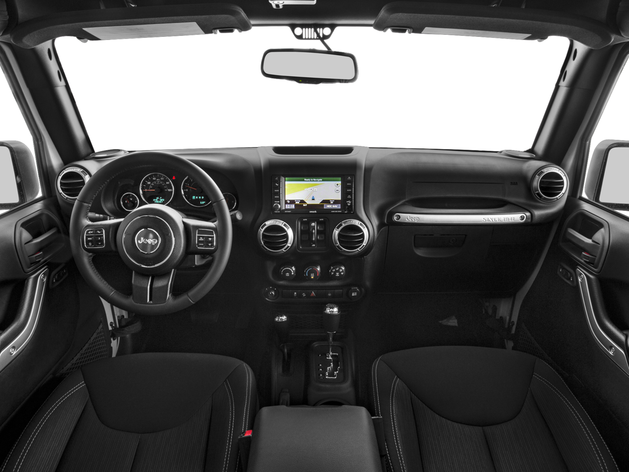 Connectivity Group (Leather Wrapped Steering Wheel, Remote USB Port, Tire Pressure Monitoring Display, Uconnect Voice Command w/Bluetooth®, and Vehicle Information Center), Dual Top Group (Black 3-Piece Hard Top, Delete Sunrider Soft Top, Freedom Panel Storage Bag, Premium Black Sunrider Soft Top, Rear Window Defroster, and Rear Window Wiper/Washer), Quick Order Package 23R, Quick Order Package 24R, 17 x 7.5 Polished Mineral Gray Wheels, 3.73 Rear Axle Ratio, 4-Wheel Disc Brakes, 40GB Hard Drive w/28GB Available, 5-Year SiriusXM Travel Link Service, 6.5 Touchscreen Display, 8 Speakers, ABS brakes, Air Conditioning, Air Conditioning w/Auto Temperature Control, Air Filtering, Alloy wheels, Alpine 9-Speaker w/All Weather Subwoofer, AM/FM radio: SiriusXM, Audio Jack Input for Mobile Devices, Auto-dimming Rear-View mirror, Body Color Fender Flares, Brake assist, CD player, Cloth Seats w/Adjustable Head Restraints, Compass, Driver door bin, Driver vanity mirror, Dual front impact airbags, Electronic Stability Control, Front anti-roll bar, Front Bucket Seats, Front Center Armrest w/Storage, Front fog lights, Front reading lights, Fully automatic headlights, GPS Navigation, Heated door mirrors, Heated Front Seats, Humidity Sensor, Illuminated entry, Integrated roll-over protection, Leather steering wheel, Low tire pressure warning, Occupant sensing airbag, Outside temperature display, Panic alarm, Passenger door bin, Passenger vanity mirror, Performance Suspension, Power door mirrors, Power steering, Power windows, Radio data system, Radio: 130, Radio: 430N, Rear anti-roll bar, Remote keyless entry, Remote Start System, Security system, SiriusXM Travel Link, Speed control, Split folding rear seat, Steering wheel mounted audio controls, Tachometer, Tilt steering wheel, Traction control, Trip computer, and Variably intermittent wipers.