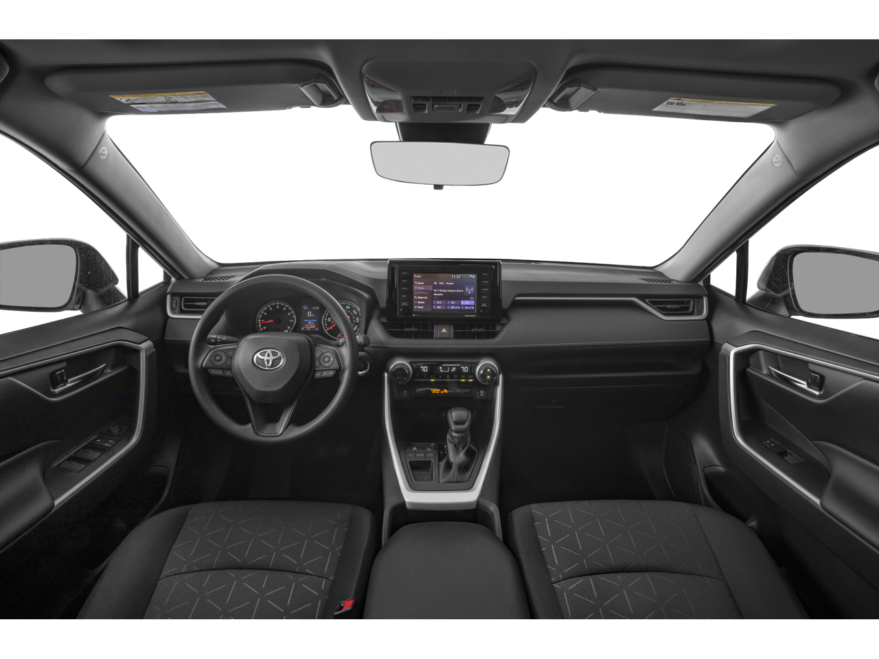 Black Cloth, 4-Wheel Disc Brakes, 6 Speakers, ABS brakes, Air Conditioning, Alloy wheels, AM/FM radio: SiriusXM, AM/FM Stereo, Apple CarPlay/Android Auto, Auto High-beam Headlights, Automatic temperature control, Axle Ratio: 3.177, Brake assist, Bumpers: body-color, Delay-off headlights, Driver door bin, Driver vanity mirror, Dual front impact airbags, Dual front side impact airbags, Electronic Stability Control, Emergency communication system: Safety Connect with 1-year trial, Exterior Parking Camera Rear, Fabric Seat Trim, Four wheel independent suspension, Front anti-roll bar, Front Bucket Seats, Front Center Armrest, Front dual zone A/C, Front reading lights, Fully automatic headlights, Heated door mirrors, Illuminated entry, Knee airbag, Low tire pressure warning, Occupant sensing airbag, Outside temperature display, Overhead airbag, Overhead console, Panic alarm, Passenger door bin, Passenger vanity mirror, Power door mirrors, Power driver seat, Power steering, Power windows, Radio data system, Rear anti-roll bar, Rear seat center armrest, Rear window defroster, Rear window wiper, Remote keyless entry, Roof rack: rails only, Speed control, Speed-sensing steering, Split folding rear seat, Spoiler, Steering wheel mounted audio controls, Tachometer, Telescoping steering wheel, Tilt steering wheel, Traction control, Trip computer, Turn signal indicator mirrors, Variably intermittent wipers, and Wheels: 17 5-Spoke Silver Alloy.
