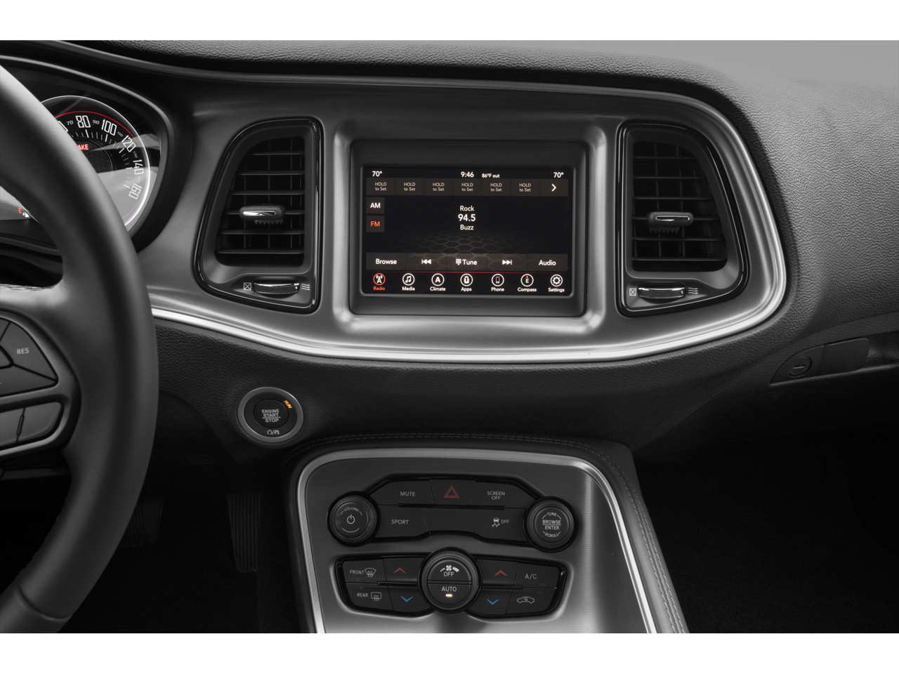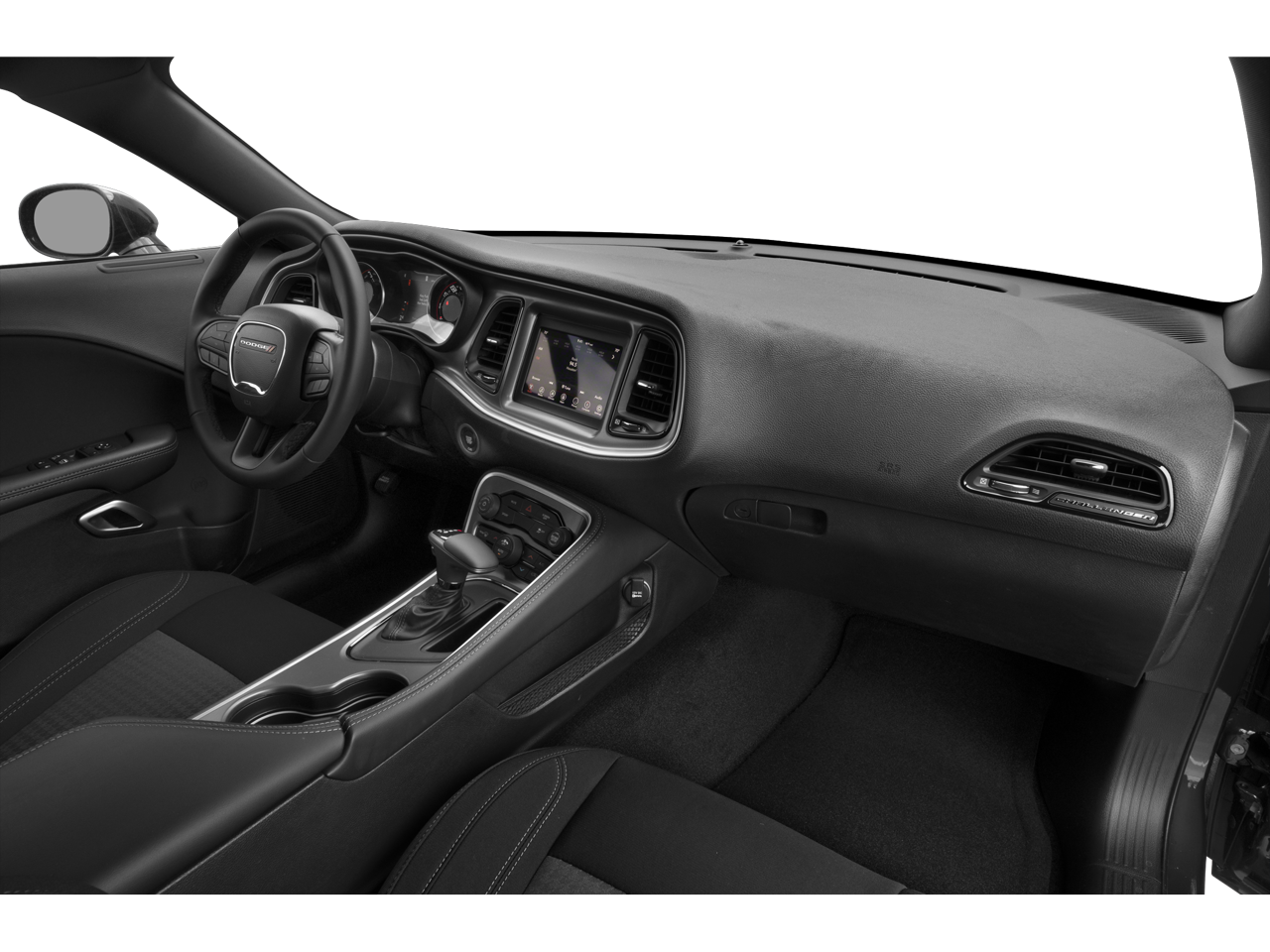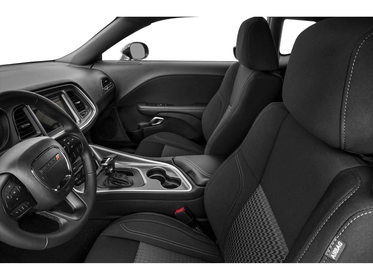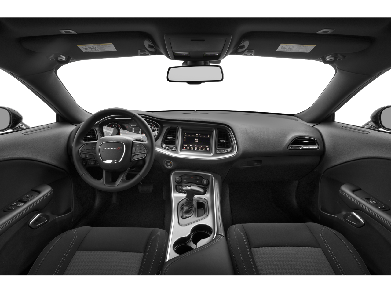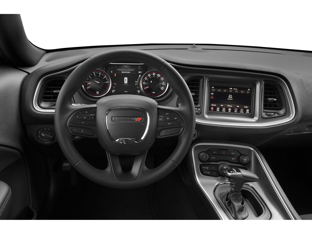 Blacktop Package (Black Fuel Filler Door, Black Grille w/Bezel, Challenger Blacktop Grille Badge, Gloss Black I/P Cluster Trim Rings, Leather Performance Steering Wheel, Satin Black Dodge Tail Lamp Badge, and Wheels: 20 x 8.0 Black Noise Painted), Quick Order Package 2EA, 276 Watt Amplifier, 4-Wheel Disc Brakes, 6 Speakers, ABS brakes, Air Conditioning, Alloy wheels, AM/FM radio, Anti-Lock Brakes, Anti-whiplash front head restraints, Apple CarPlay, Apple CarPlay/Android Auto, Auto Leather Wrapped Shift Knob, Auto-dimming Rear-View mirror, Automatic temperature control, AutoStick Automatic Transmission, Body Color Exterior Mirrors, Brake assist, Bumpers: body-color, Delay-off headlights, Driver door bin, Driver vanity mirror, Dual front impact airbags, Dual front side impact airbags, Electronic Stability Control, Exterior Mirrors w/Heating Element, For More Info, Call 800-643-2112, Four wheel independent suspension, Front anti-roll bar, Front Bucket Seats, Front Center Armrest, Front dual zone A/C, Front reading lights, Fully automatic headlights, Google Android Auto, GPS Antenna Input, Heated door mirrors, Houndstooth Cloth Sport Seat, Illuminated entry, Integrated Center Stack Radio, Integrated Voice Command w/Bluetooth®, Leather Shift Knob, Low tire pressure warning, Manuf Statement of Origin, Media Hub (2 USB, AUX), Outside temperature display, Overhead airbag, Overhead console, Panic alarm, ParkView Rear Back-Up Camera, Passenger door bin, Passenger vanity mirror, Power door mirrors, Power driver seat, Power steering, Power windows, Radio data system, Radio: Uconnect 4 w/7 Display, Rear anti-roll bar, Rear reading lights, Rear seat center armrest, Rear window defroster, Remote keyless entry, Security system, SiriusXM Radio Service, SiriusXM Satellite Radio, Speed control, Speed-sensing steering, Split folding rear seat, Spoiler, Steering wheel mounted audio controls, Tachometer, Telescoping steering wheel, Tilt steering wheel, Tip Start, Traction control, Trip computer, USB Host Flip, Variably intermittent wipers, and Wheels: 18 x 7.5 Aluminum Fine Silver.